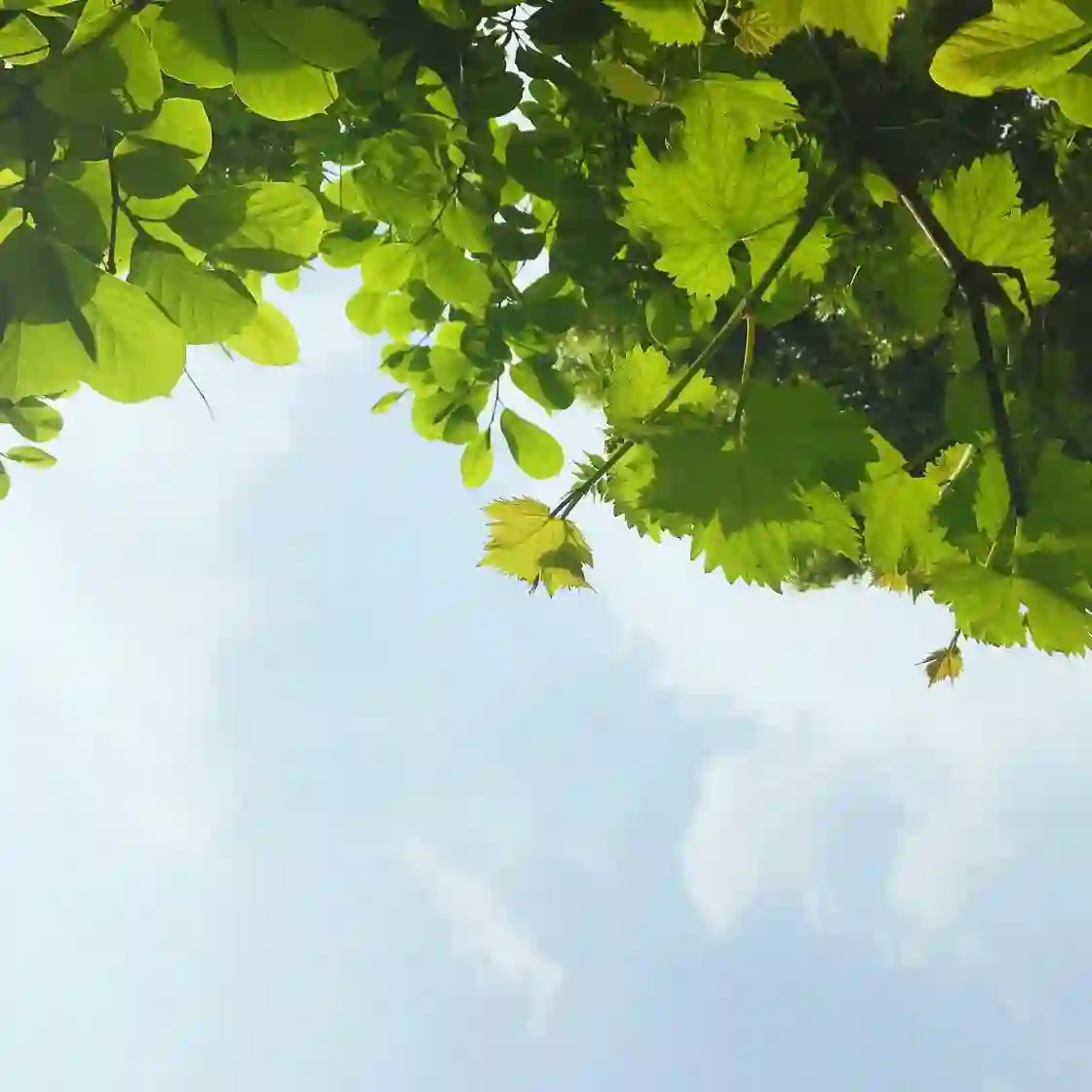 如果身边有树叶或者花朵,可以将它们利用起来,用作前景作为拍摄,更多颜色的点缀能增加照片的层次。假如天空只有一朵白云,可用留白的方式来拍摄,让白云点缀大面积蓝色的天空,会有一种日系清新的感觉。