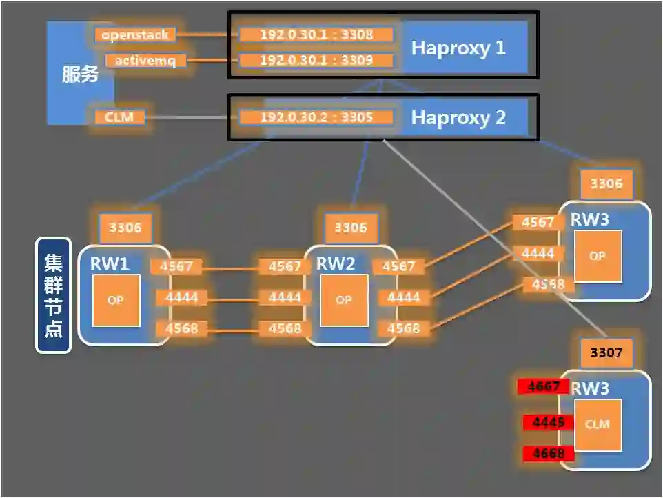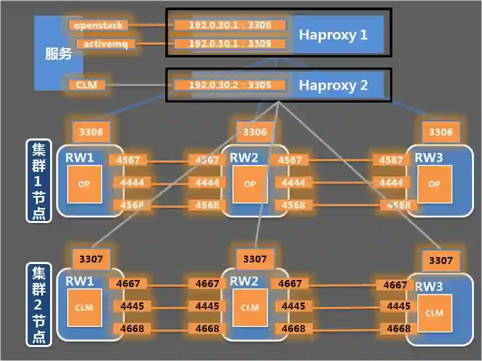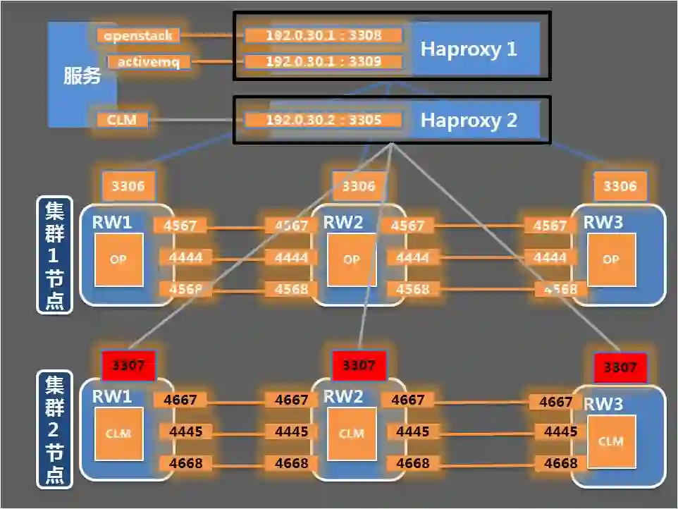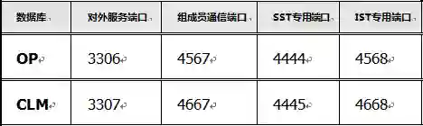 数据库对外服务的端口:OP实例的端口是3306,CLM实例的端口是3307;