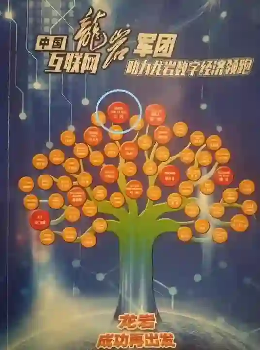 龙岩籍互联网精英图谱,可以看到王兴位于显眼位置(蓝圈)。来源于龙岩市电商协会内部刊物,作者陈永洋。