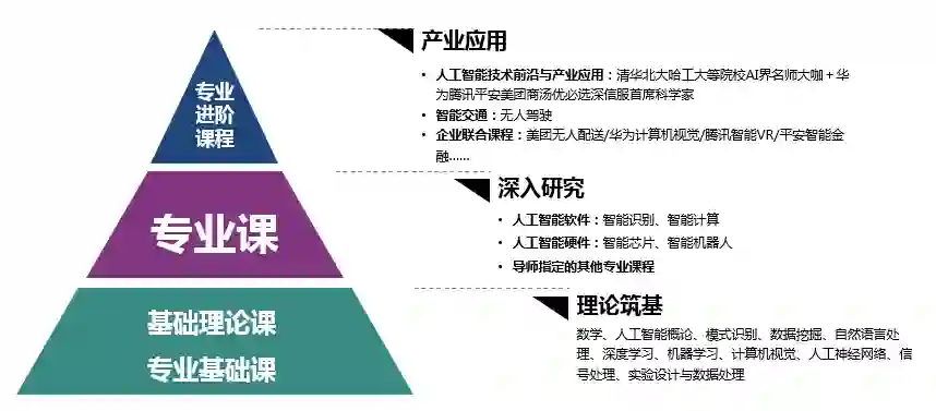 人工智能工程硕士项目属于我院“6+1”主题领域重点发展项目之一,依托自动化、计算机、电子等优势学科建设,具有雄厚的师资力量和完善的科研条件,大部分专职教师具有海外知名高校学习及工作背景以及主持高水平国家级课题的经历,科研经历丰富。在产教融合方面,与腾讯、商汤、华为、平安、美团、优必选等著名人工智能领军企业建立了联合培养平台,为学生开展高水平的专业实践和“应用场景”导入式教学体系提供了有力的支撑。在学术研究方面,所培养的学生已在CVPR、ICML,ICDE,IJCAI,AAAI,ACL等顶级学术会议以及PAMI,TNNLS等权威期刊发表系列论文并多次荣获会议最佳论文、校优秀硕士学位论文等荣誉。培养的学生就业集中在人工智能相关高科技行业的领军企业,同时有一批优秀学子赴海外一流高校深造。