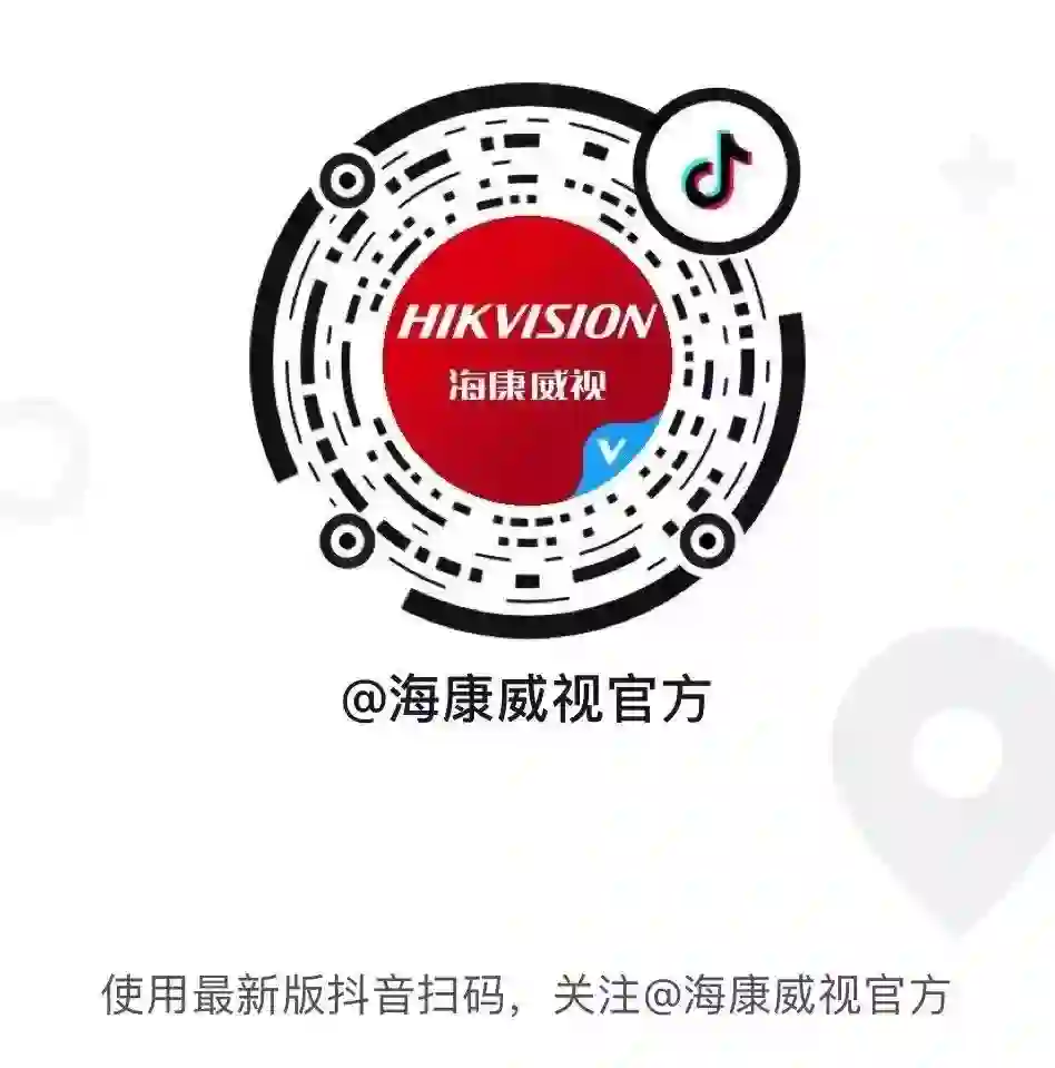 下载抖音App,搜索:“海康威视官方”或“HIKVISIONDOUYIN”,或通过抖音App扫描以下抖音码添加关注,我们不见不散。