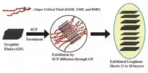 相比之下,超临界流体剥离制备石墨烯的方法可得到高质量的单层或少数层石墨烯,同时有操作过程简单、制备工艺绿色、污染小、能耗小、成本低等特点,受到部分研究者们的青睐。