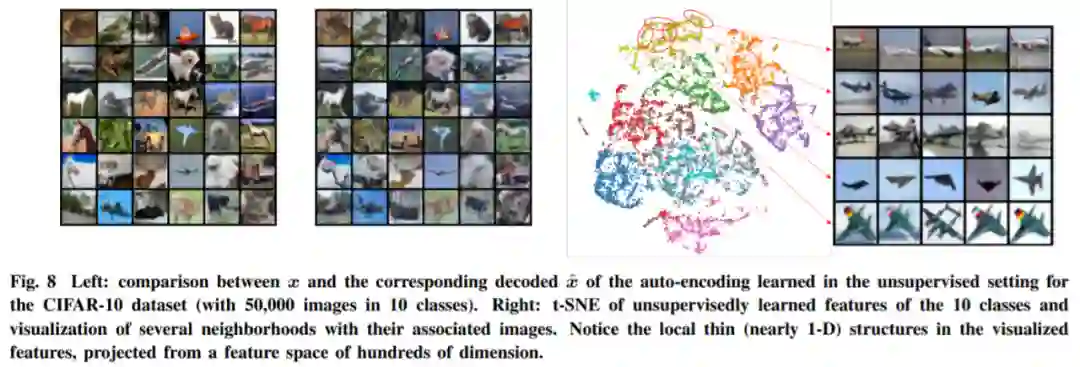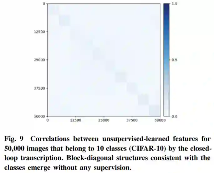 如图 8 所示,如此学习的自动编码不仅表现出良好的样本一致性,而且学习到的特征还表现出清晰且有意义的局部低维(薄)结构。更令人惊讶的是,即使在训练期间根本没有提供任何类信息,子空间或特征相关的块对角结构也开始出现在为类学习的特征中(图 9)。因此,学习到的特征结构类似于在灵长类动物大脑中观察到的类别选择区域。