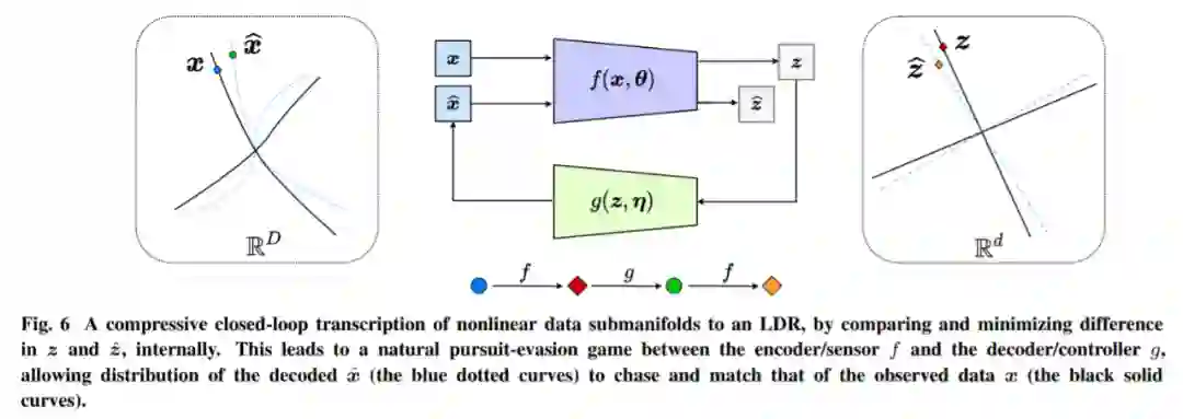 第一个问题的答案属于信息 / 编码理论领域,该理论研究如何准确量化和测量数据的信息,然后寻求信息的最紧凑表示。一旦学习的目标明确并确定,第二个问题的答案自然会落入控制 / 博弈论领域,该领域提供了一个普遍有效的计算框架,即闭环反馈系统,用于一致地实现可测量目标,如下图 1 所示。