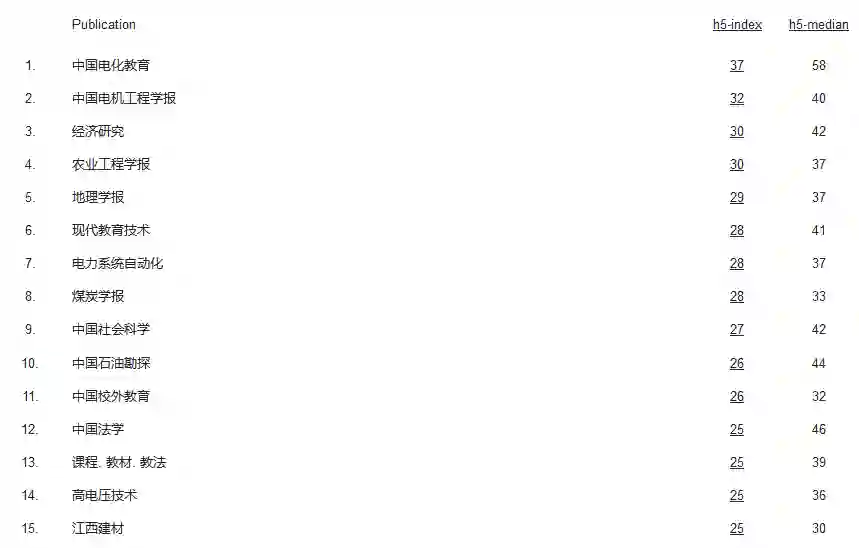 中文期刊榜单前 15 名