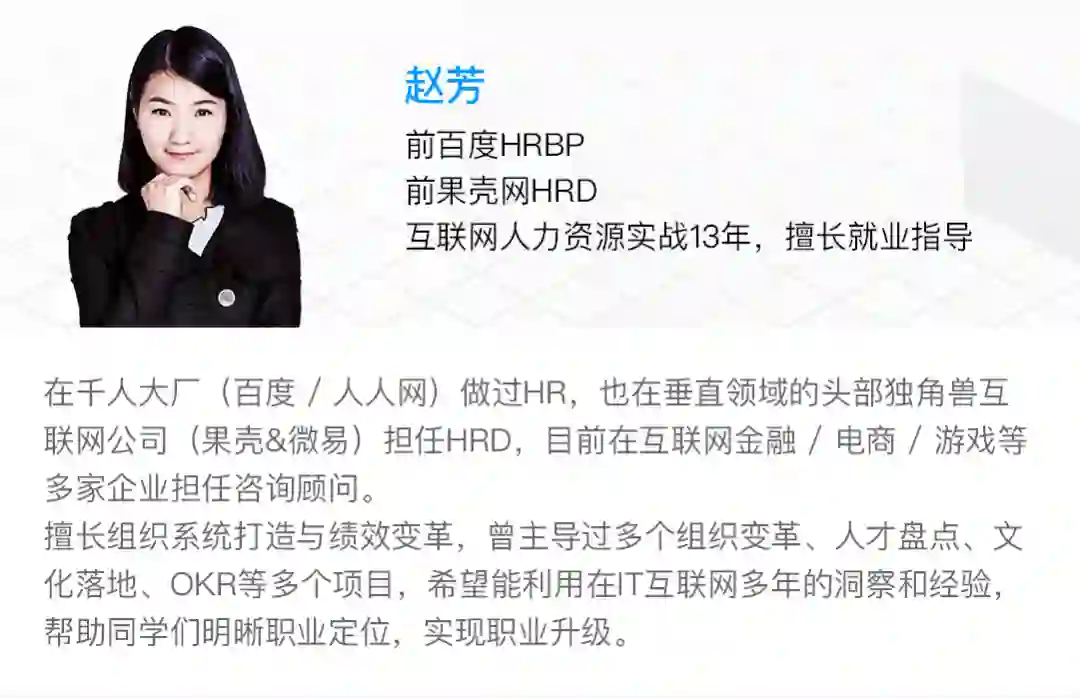 报名《90天运营实战班》,你就可以拥有5位平均在大厂工作10年+的运营大咖,以及一位13年经验的HRBP,帮你解决求职面试问题。