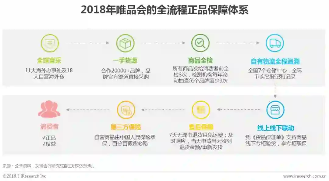 正品保障是消费者网购体验中的重要部分,也是唯品会重要的战略资产。唯品会在中国开创了“名牌折扣+限时抢购+正品保障”的创新电商模式,并持续深化为“精选品牌+深度折扣+限时抢购” 的正品特卖模式。借助自身的自营模式和物流等基础设施,唯品会构建了一套完整的体系,实现从源头到消费者的全流程正品保障。