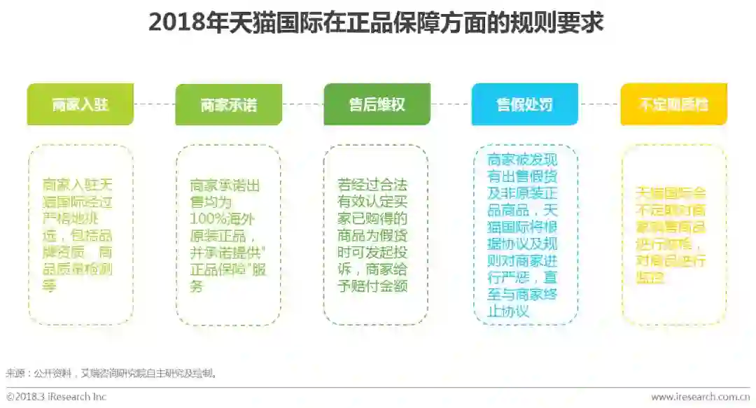 天猫的商业角色为电商平台,为品牌商提供线上销售渠道,并不涉及商品的供应链,因而对平台上的商品质量和正品力把控较弱,但可以通过制定平台规则,提高准入标准和加大售假处罚力度等措施保障商品品质和真实性。从规则来看,目前天猫国际已经构建起从源头开始的全流程正品保障体系,全程监管,最大限度保证消费者权益。
