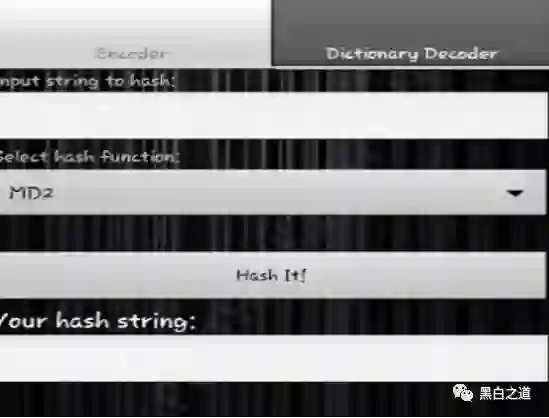 你现在看到的是“ 编码器 ”。您可以使用它来散列字符串。您所要做的就是输入字符串,然后选择一个哈希函数,然后点击“ Hash It! ”按钮。