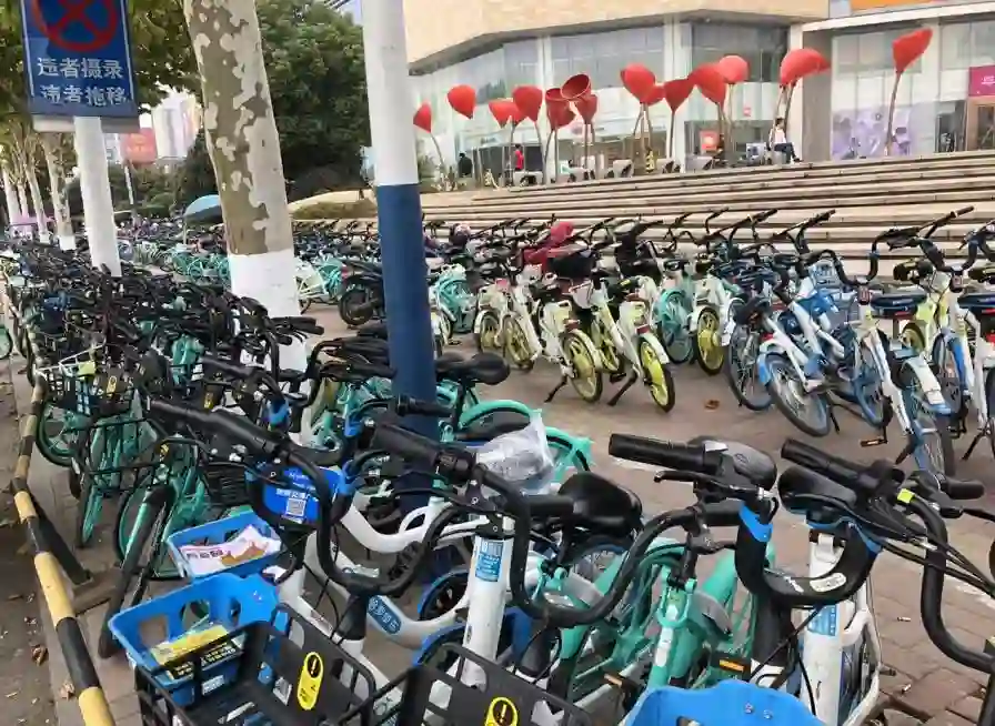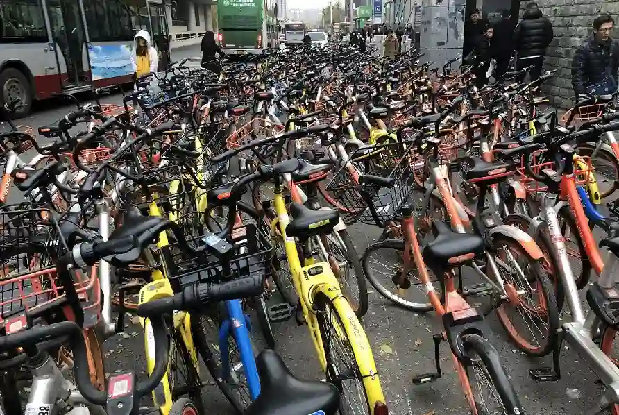 图1:城市中乱停乱放的共享单车