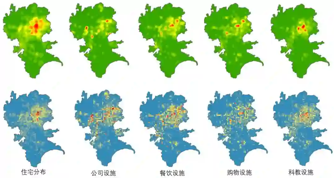 图5:城市共享单车与主要设施空间分布关系