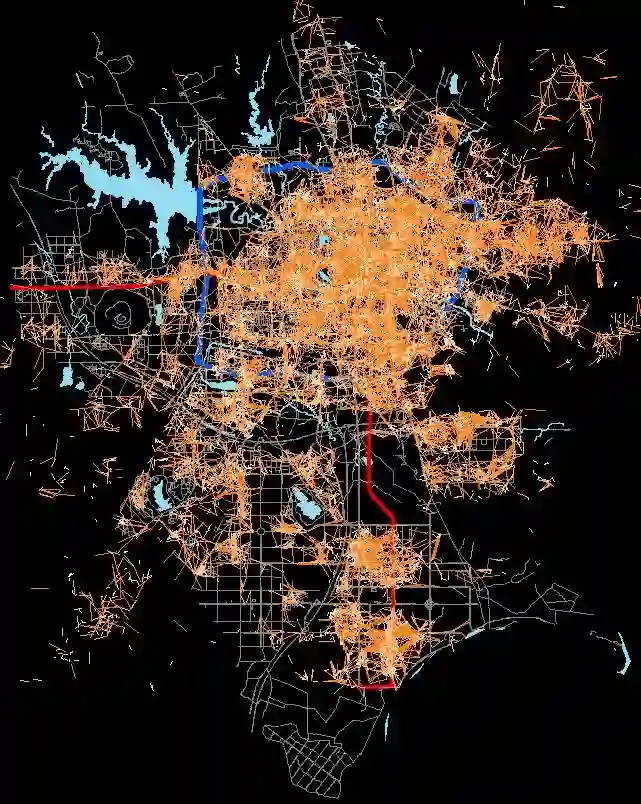 从城市整体空间上可以看出,车辆分布主要集中在城市核心区域,并与城市住宅、公司、餐饮、轨道交通站点等热点设施的分布高度重合。在这些热点设施周边的车辆停放需求是同区域其他设施周边的5-8倍,停放缺口矛盾突出。