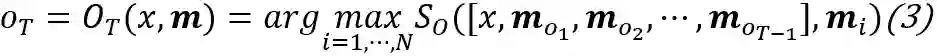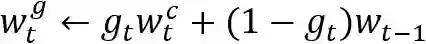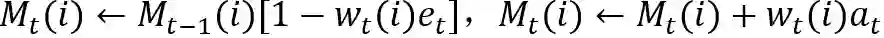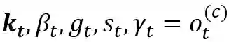 ,其中为一个打分函数,例如可以采用简单的内积运算来实现。更进一步的来说,每一时刻被读取/选择的内存单元可以表达为: