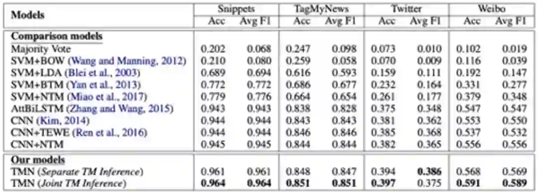 这个模型在多个短文本数据集(新闻、Twitter数据、微博数据)上进行了实验,与其他模型可以拉开较大差距。