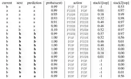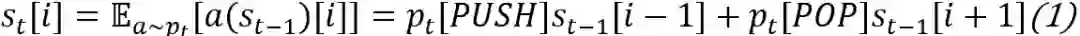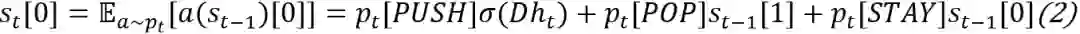 这里需要注意的是,正常的压栈弹栈操作是不可微的,所以这里可以使用期望近似(分别为对栈内部元素更新操作和栈顶元素更新操作):