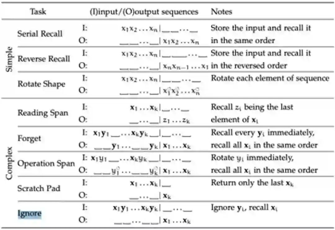 表五:记忆相关任务