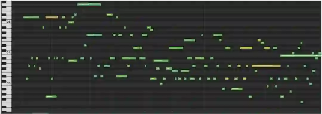 之前 Magenta 和其他人创作的音乐可以生成可传递的单声道旋律或者时间步的序列,在每一个时间步上,最多一个音符可以处于「开启」状态。这些模型类似于生成文本的语言模型:不同的是,该模型输出的不是代表单个词语的独热向量,而是代表音符的独热向量。