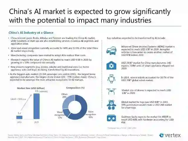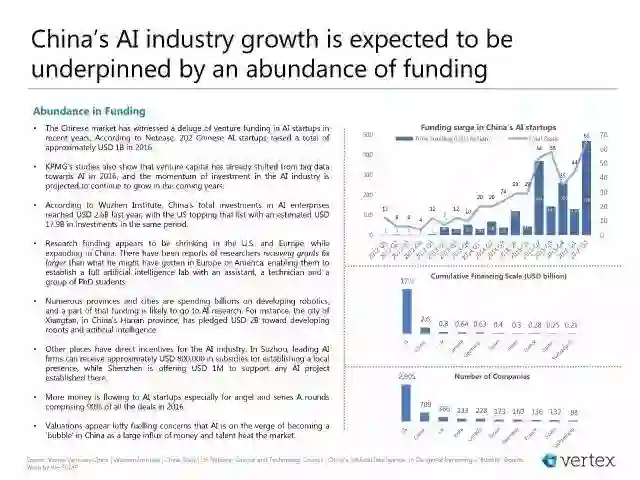 • 中国互联网巨头百度、阿里巴巴和腾讯引领中国AI市场,还有成千上万的初创企业在不同的AI领域和应用建立服务