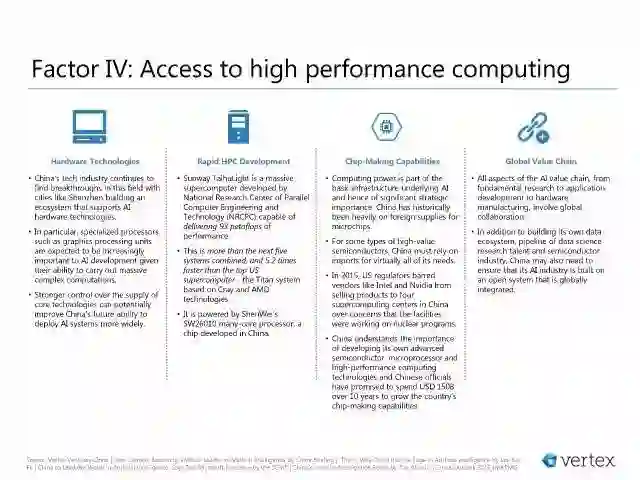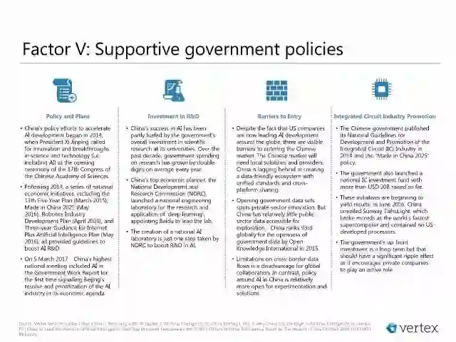 影响中国成为全球AI 中心的主要因素包括: