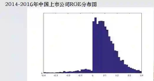 我再举一个例子我们上市公司的质量,从各个角度来分析,这个图我画了15年,每年都画,每年都没有变化,这是我们上市公司ROE大家比较熟悉,直方图,显然不是正态分布,明显在0这个点上有很大的跳跃,就说明中国上市公司在经济层面都非常的巧妙,总能把地位做到高0点,这是美国正态分布,中国这个是不是一个正态分布,大家可以做这样的结论。