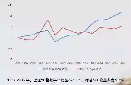 我们再回到上市公司里面来,上市公司刚才讲到取的上证50和标普500相比较,感觉还好,这个数字,03到2017年,上证50年化只有3.1%,这个比例是非常低的,背后我想折射出的还是刚才讲到的投资标的物,质量怎么样。