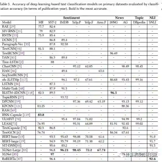 •在表5中总结了经典模型在基准数据集上的分类准确度得分,并通过讨论文本分类面临的主要挑战。