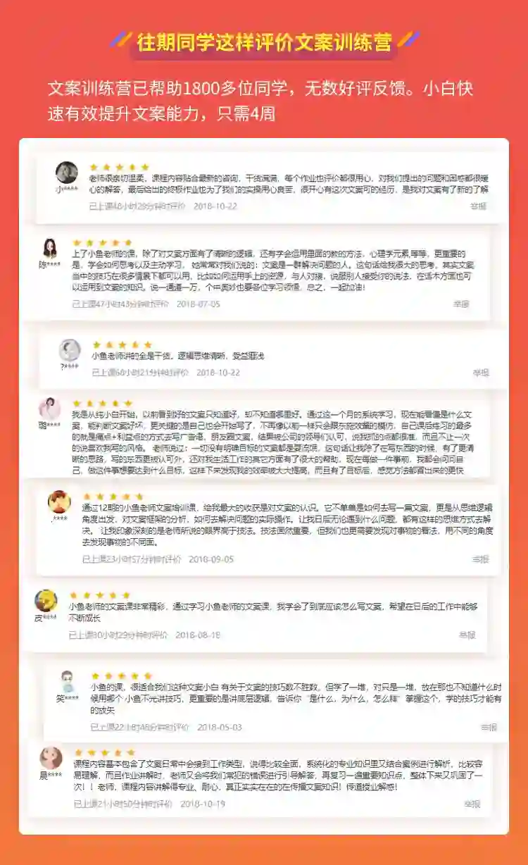 2000+名文案学员好评课程
