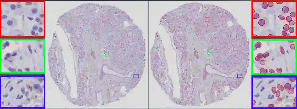 英加自动胰腺癌图像分析模块运行结果:所有癌细胞都被准确检测和分割出来,其准确程度为99%
