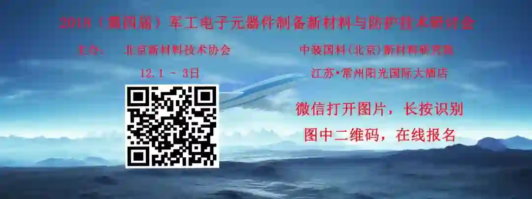 为了配合国家军民融合发展国防装备及迎接5G时代,北京新材料技术协会特举办2018(第四届)军工电子元器件制备新材料与防护技术研讨会,本大会宗旨是,提供先进电子元器件制备新材料及其防护新技术、新工艺、新应用,军工电子技术发展需求交流与研讨平台,为研发、设计、生产、应用建立纵向协作机会,也为先进电子元器件新材料横向契合创造合作机遇。