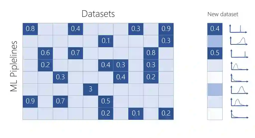 该方法背后的思想是,如果两个数据集在几个机器学习工作流上都得到了相似的结果,那么它们很有可能在剩下的其他工作流上也得到这样的结果。这种说法可能对你来说很熟悉,尤其是如果你以前处理过推荐系统中的协同过滤问题,也就是如果两个用户在过去喜欢过同一件东西,那么他们在未来可能会喜欢相似的东西。