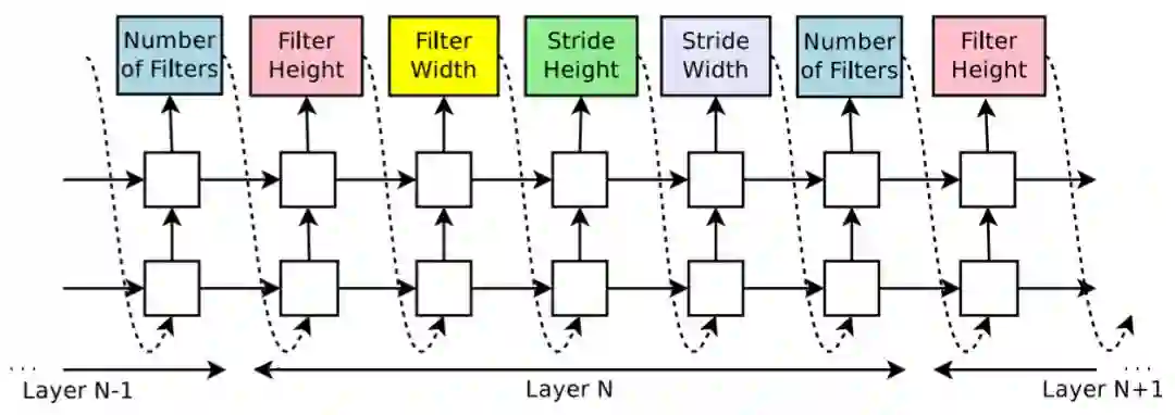 图:使用上述方法生成的 CNN 的编码方式。每种颜色的框对应一个由 RNN 生成的上述方法的架构中的参数(或表征)。