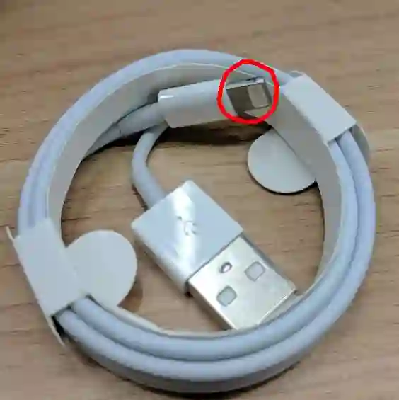 盒子里没有说明书,配了一个山寨的耳机和一条数据线,看了数据线之后差评君发现这山寨厂商也是敬业,手机使用 Lightning 接口充电的!