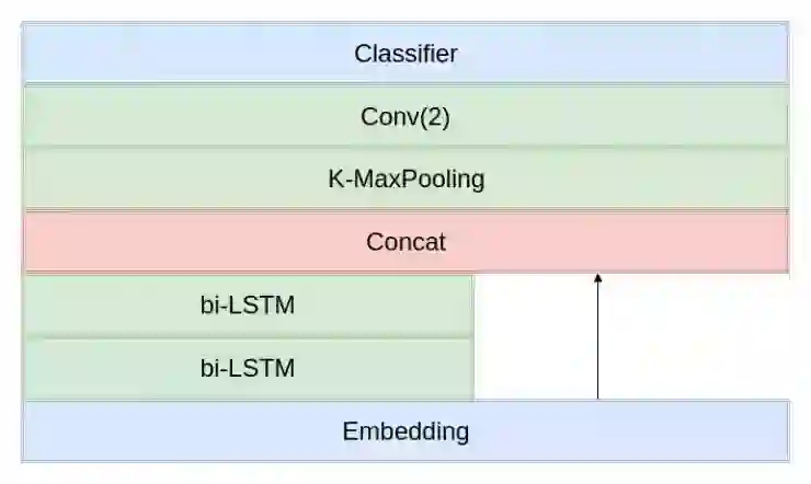 参考原论文的实现,和 RNN 类似,也是两层双向 LSTM,但是需要和 Embedding 层的输出 Concat(类似于 resnet 的 shortcut 直连)。