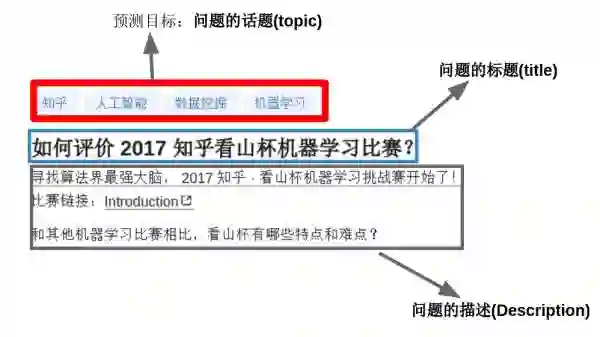 训练集包含 300 万条问题的标题(title),问题的描述(description)和问题的话题(topic)