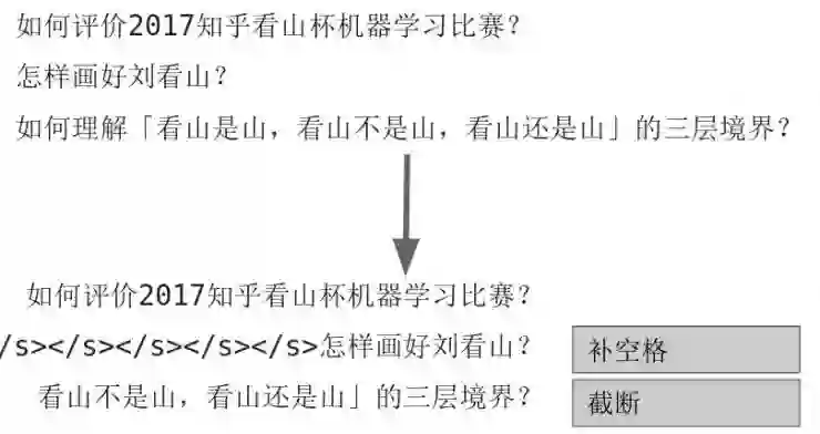 对于不同长度的问题文本,pad 和截断成一样长度的(利用 pad_sequence 函数,也可以自己写代码 pad)。太短的就补空格,太长的就截断。操作图示如下: