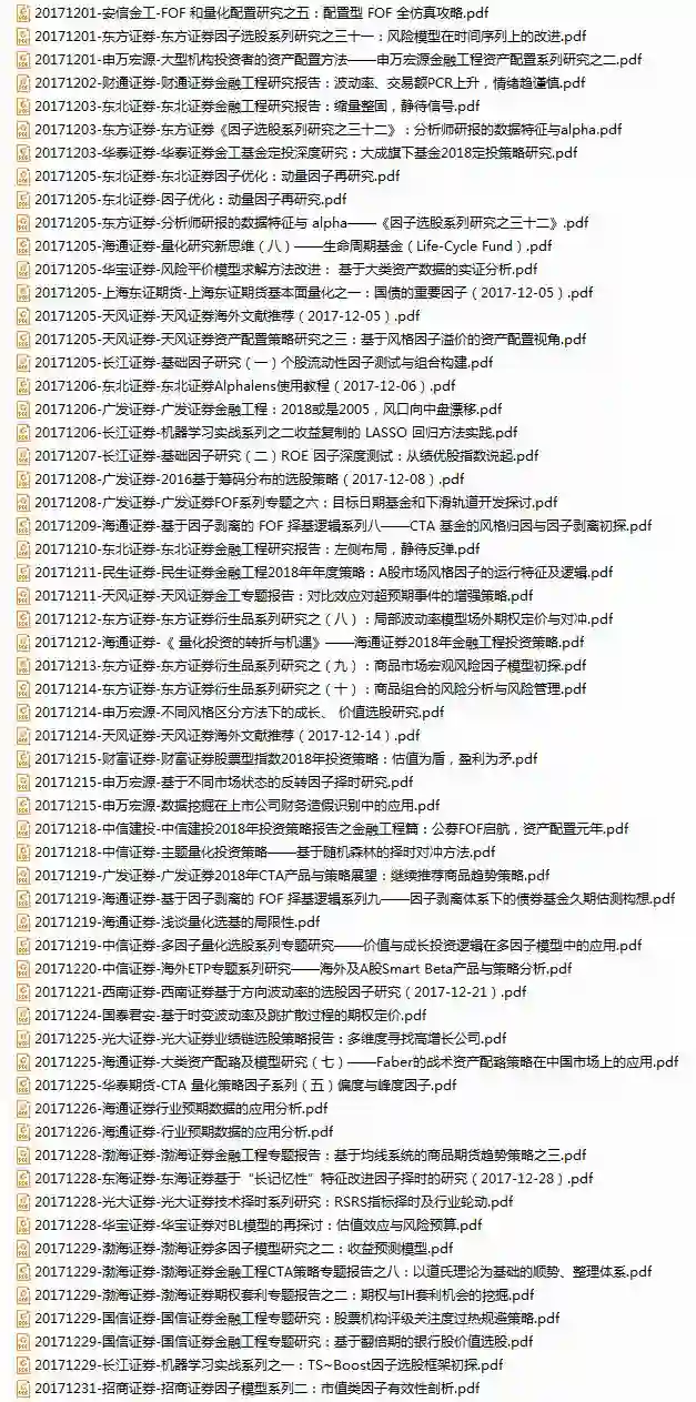 很抱歉,这么晚才把2017年12月的研报资源推送出来。