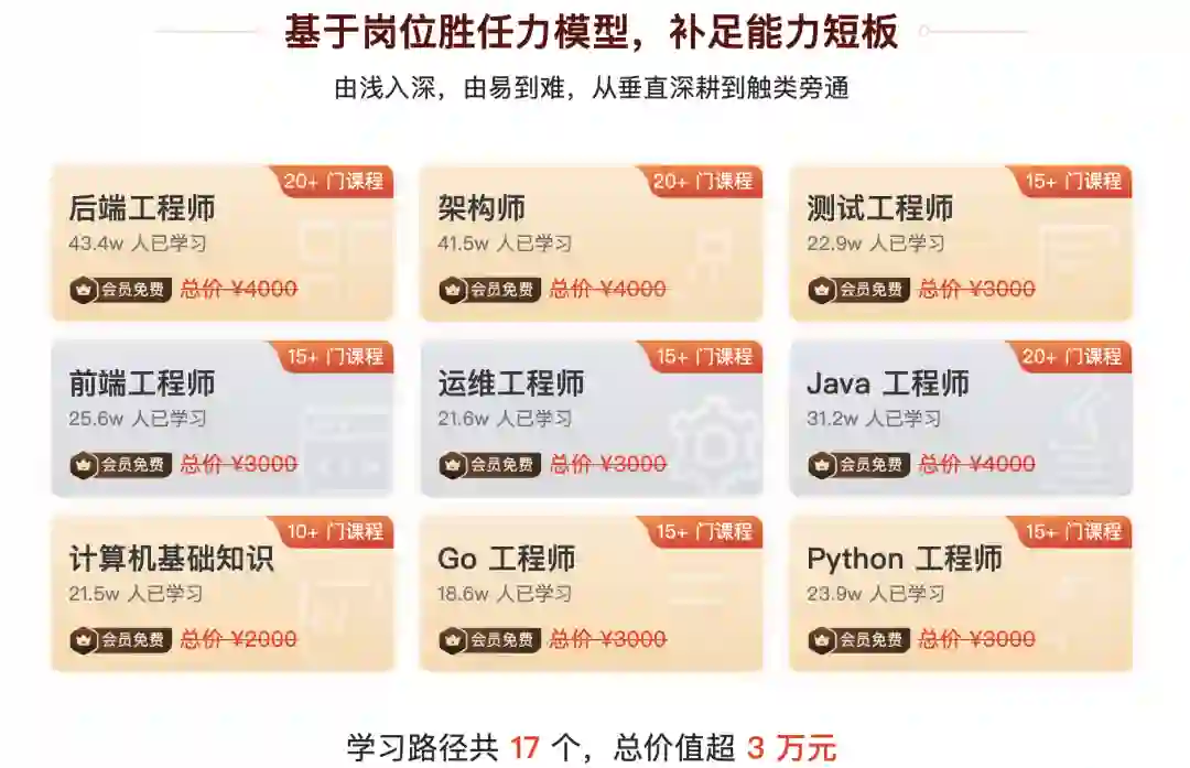职场人的瓶颈,很大程度来源于公司规模小、项目少、工作内容缺少含金量等,而我们的体系课和案例课,不仅带有实战,还带你钻研源码,让你真正做到“知其然,知其所以然”,为你最大程度提升经验、开拓视野。