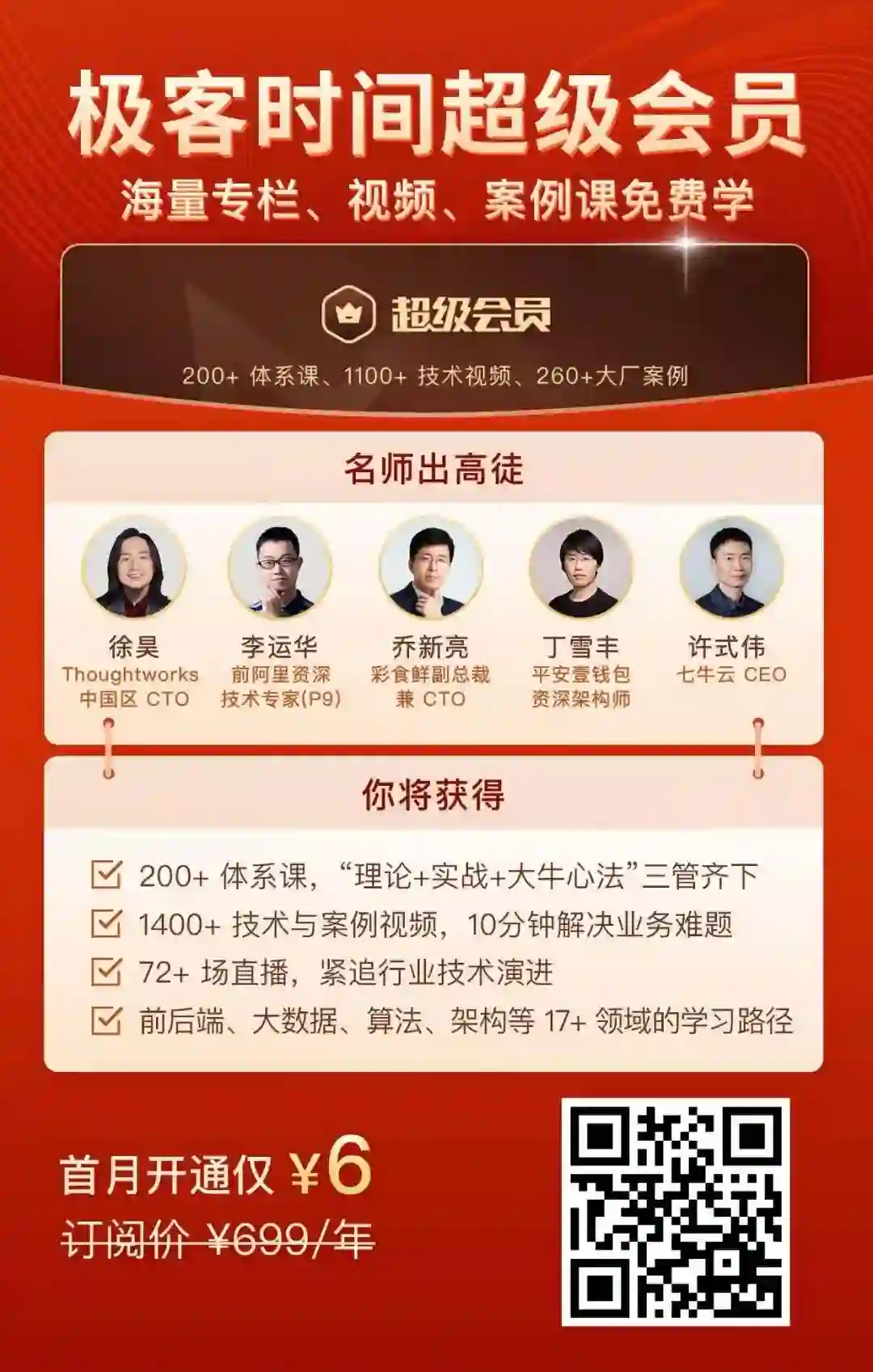 首月 6 元,一键解锁 200+ 门专栏