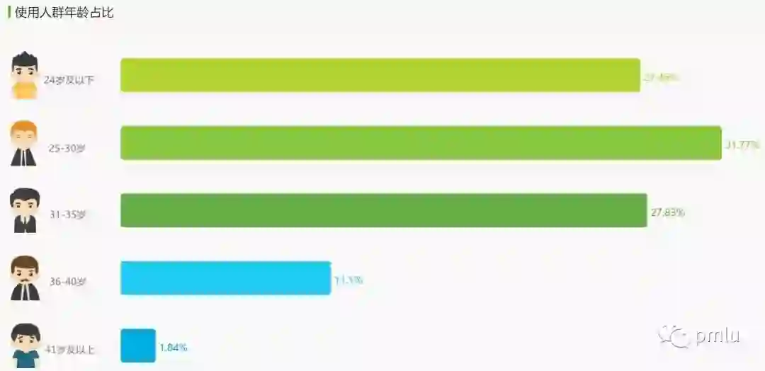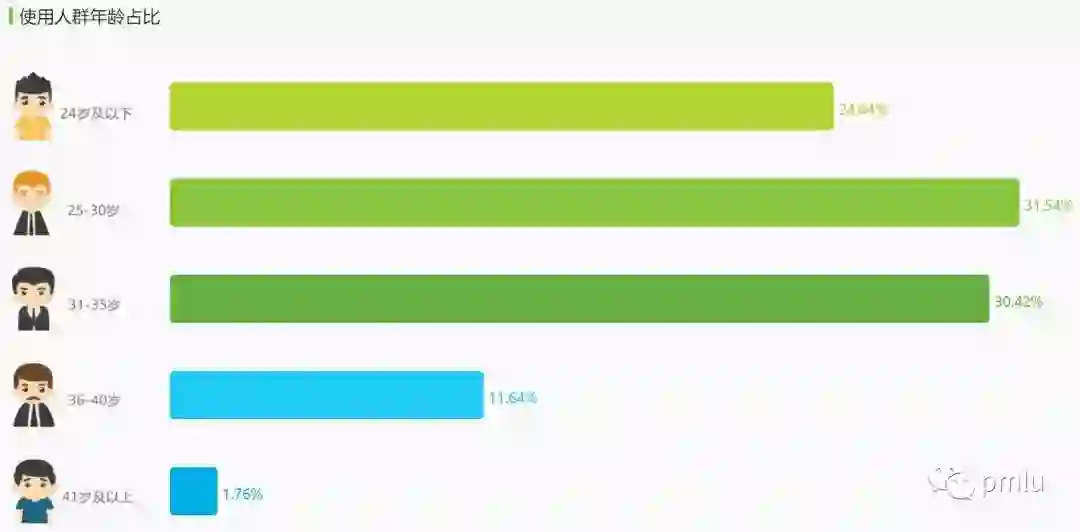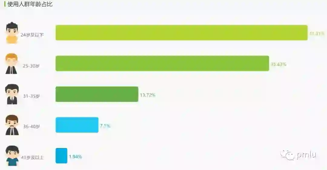 性别比例是产品的重要特征之一,男女用户的习惯差异是非常大的。从上图可以发现两者的性别比例很相似,均为女性比例占了三分之一都不到。出现这种情况其实也很好理解,游戏直播主要是以游戏为主的,而游戏用户中女性本来就很少。
