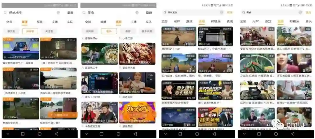 左边两张图片是斗鱼的搜索结果,右边两张图片是虎牙的搜索结果。通过结果可以发现就内容丰富度上来讲两者其实没有太大区别。都属于结果远超过用户需求的数量,因此主要竞争应该是头部市场的竞争,取决于谁能够拿到当红主播的签约。