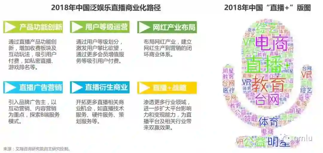 通过这张图片可以发现,直播的商业化路径其实已经比较清晰了,直播业已经度过了探索阶段。现在的直播业已经有了比较稳定的盈利模式。