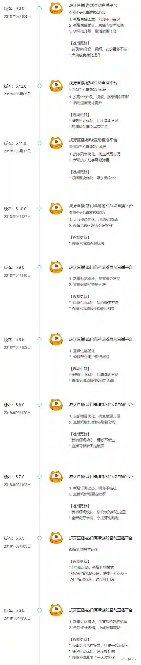 更新的风格也没有斗鱼那么激进,优化类型的更新比较多,增添功能的更新比较少。且相比较斗鱼有很多外部投资而言,虎牙的成分则相对比较简单,虎牙隶属于YY,当然腾讯对于虎牙也是有过投资的。