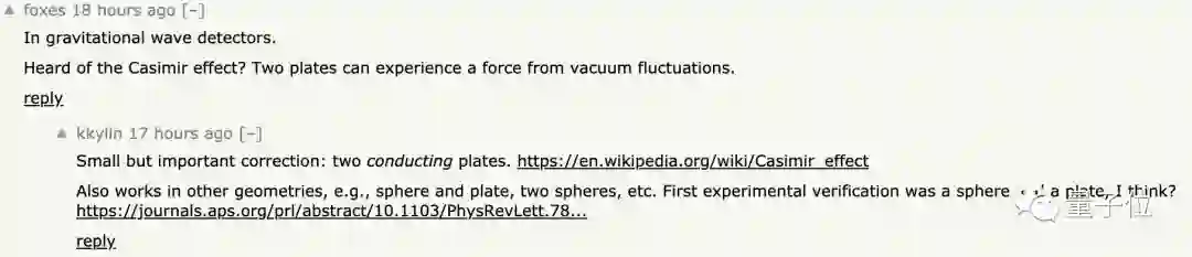 有网友开始认真求问,引力波探测器内部的构造是不是与卡西米尔效应有关。