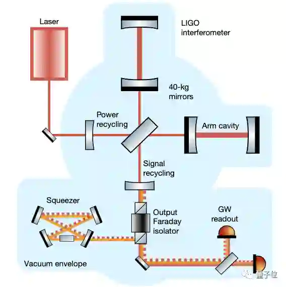 研究团队设计并加装一个名为量子挤压器的装置,用来调整LIGO干涉仪内量子噪声的特性,从而提高LIGO在探测引力波方面的灵敏度。