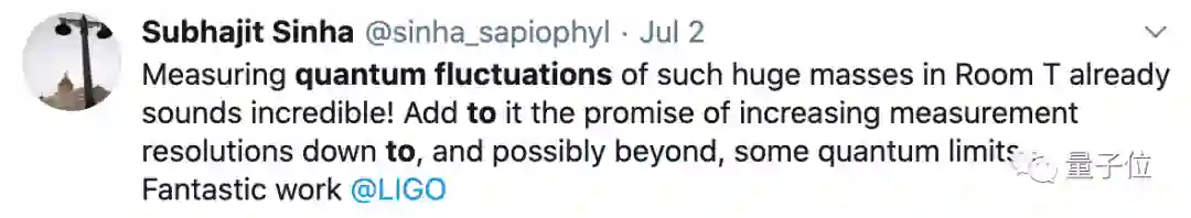 然而,事实证明,量子波动的确对宏观物体产生了影响,并足以将40公斤重的大型反射镜移动10^(-20)m的位移。