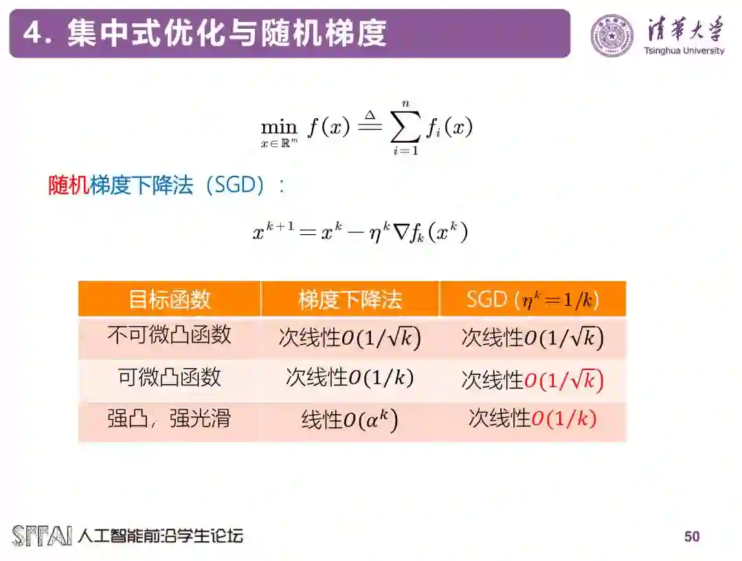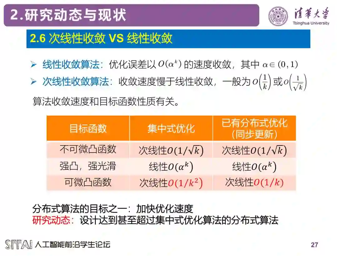 最后,算法的收敛速度始终是优化算法非常关心的一个问题,下图列出了目前最好的集中式优化算法和分布式优化算法的收敛速度比较。