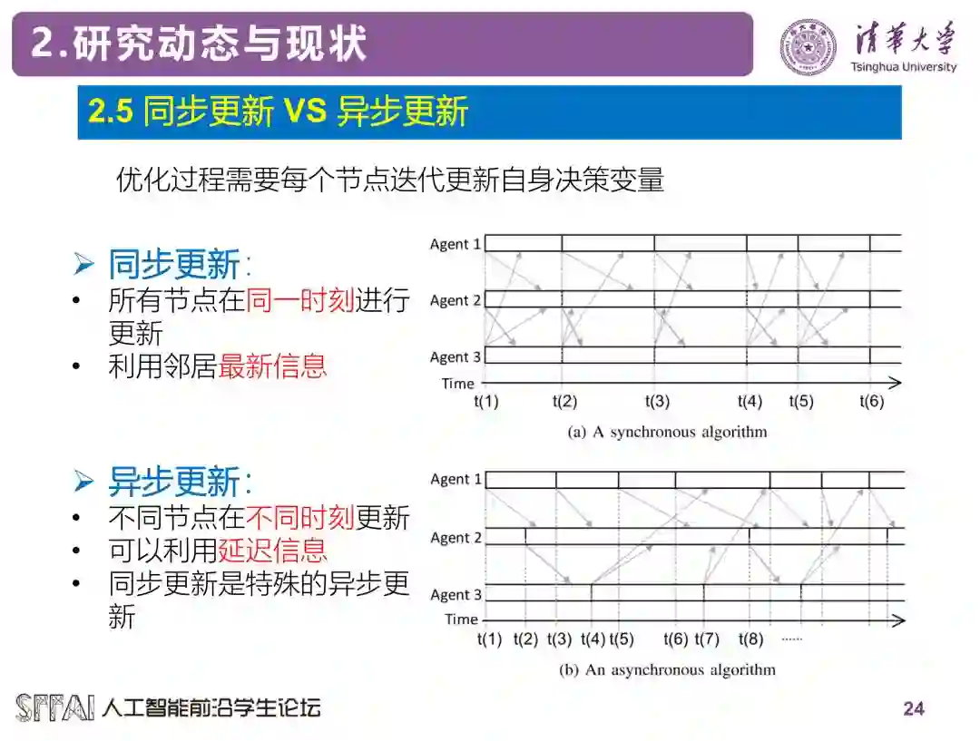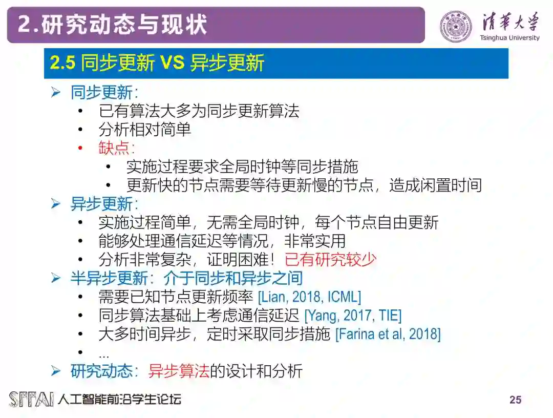 此外,已有的算法大多数为同步更新式的算法,即所有节点需要同时开始一次迭代更新,导致计算快的节点需要等待计算慢的节点。为了解决这个问题,可以考虑采用异步更新式的算法。实际上,目前异步算法的设计和研究受到了广泛的关注。