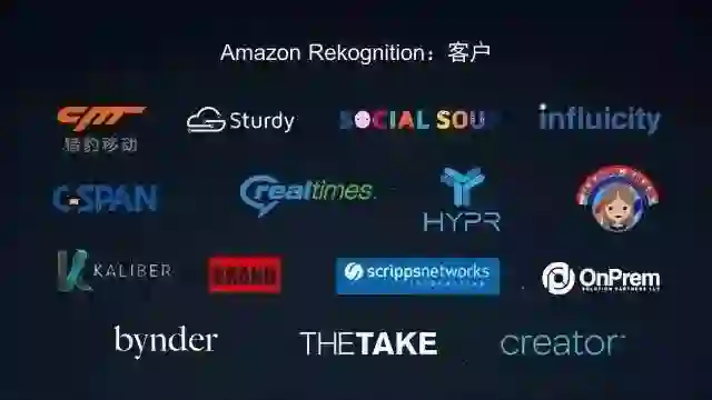 视觉服务 Rekognition 则帮助人们识别图形,提取其中的信息。比如判断图片中是否有人,通过面部检测、判断这个人是否佩戴眼镜、有什么样的表情,也可以找出做不同表情的同一个人。美国的有线电视网络 C-SPAN 在 Rekognition 发布两周之后,就通过对近十万条数据的学习建立了一个精确到秒的甄别器,用于快速识别视频内发表演说的政治家。