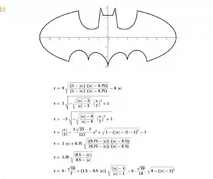 (b) J.马修·雷吉斯特的蝙蝠侠图标曲线。起初方程只有一个解析式,以椭圆方程和直线方程为基础