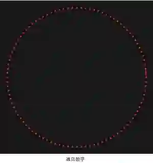 更让人意想不到的是,心形线还可以通过数论的方法来构建。在圆周上均匀地取 100 个点,编为 0 到 99 号,然后把各个点与编号为其 2 倍的点相连,如果编号的 2 倍大于等于 100,则以减去 100 计,即编号乘 2 得 100 则对应点 0,编号乘 2 得 102 则对应点 2。按这种方法,点 21 与点 42 相连,点 53 与点 6 相连。所有这些线段形成心形线。取的点越多,心形线就越准确(见下面几个图)。